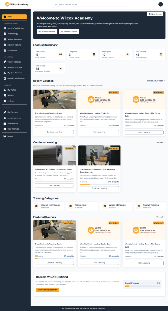 Overview Wilcox Door Service needed a modern, scalable Learning Management System (LMS) to train employees across multiple departments (sales, technicians, coordinators, admin, and management). The goal was to move beyond a generic LMS setup and create a role-driven training experience where each employee sees only the courses and modules relevant to their job—in the correct […]